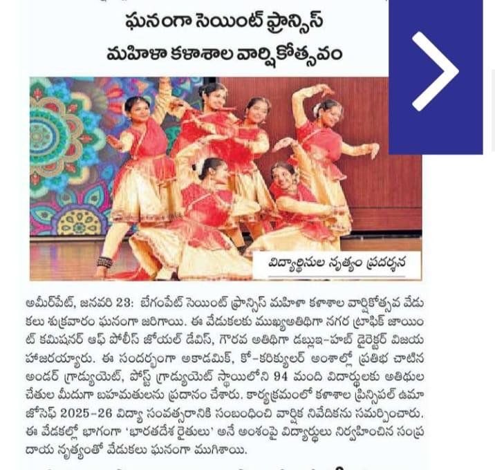 Welcome to St. Francis College for Women — a premier institution with an illustrious legacy of over 65 years in the field of higher education. Established and nurtured by the Sisters of Charity, the College has remained steadfast in its mission to provide holistic education for the empowerment of women.